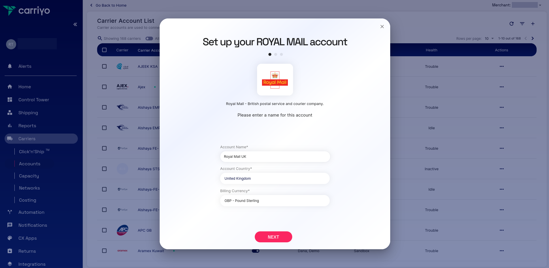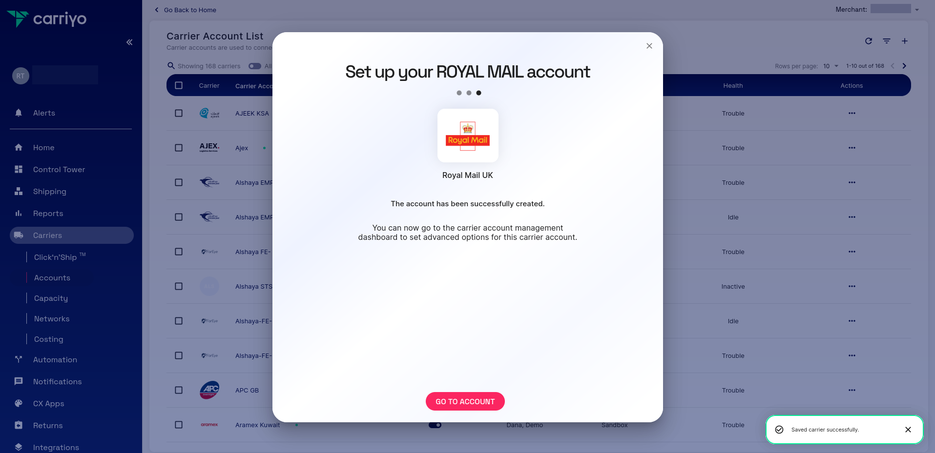 This article demonstrates the steps to set up a Royal Mail carrier account.