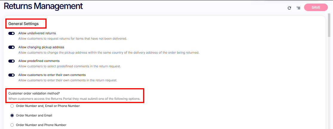 Allow undelivered returns - Enabling this option allows customers to request returns for items that have not been delivered.