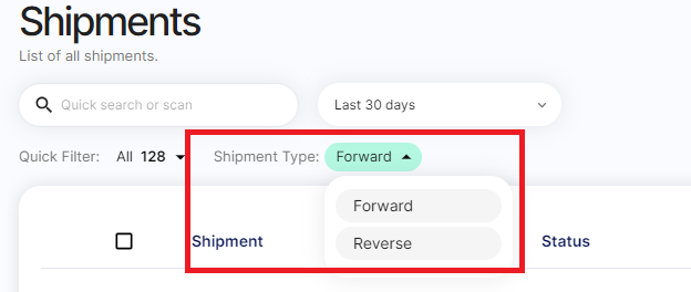 - We also removed the forward and reverse shipment tabs to gain more screen space. You can now choose the shipment type from the new Shipment type dropdown.