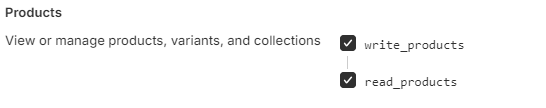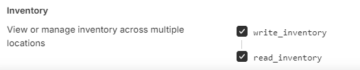 Then, you will need to enable the permissions in Shopify: Product (read/write) and Inventory (read and write).