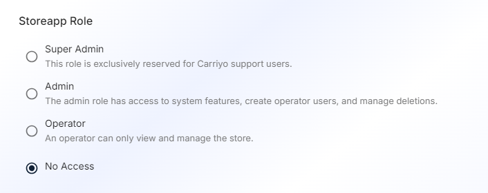 Previously, there was no role management for the Store App. We now offer the ability to define different roles, including Admin, and Operator: