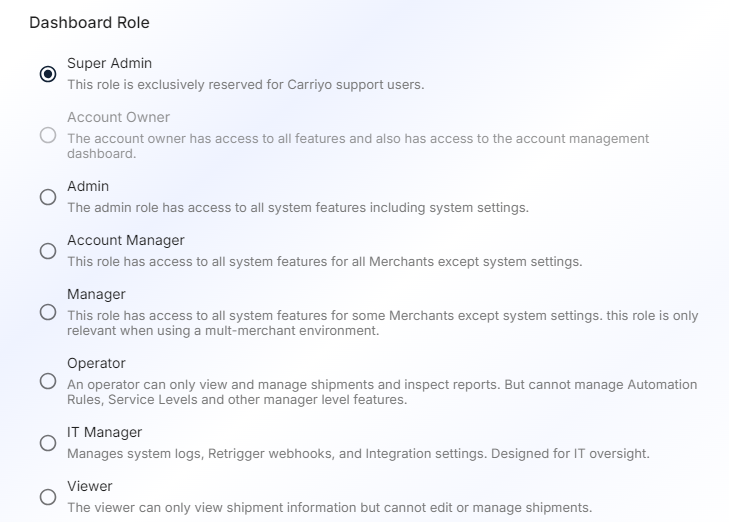- Roles can be assigned through the Dashboard