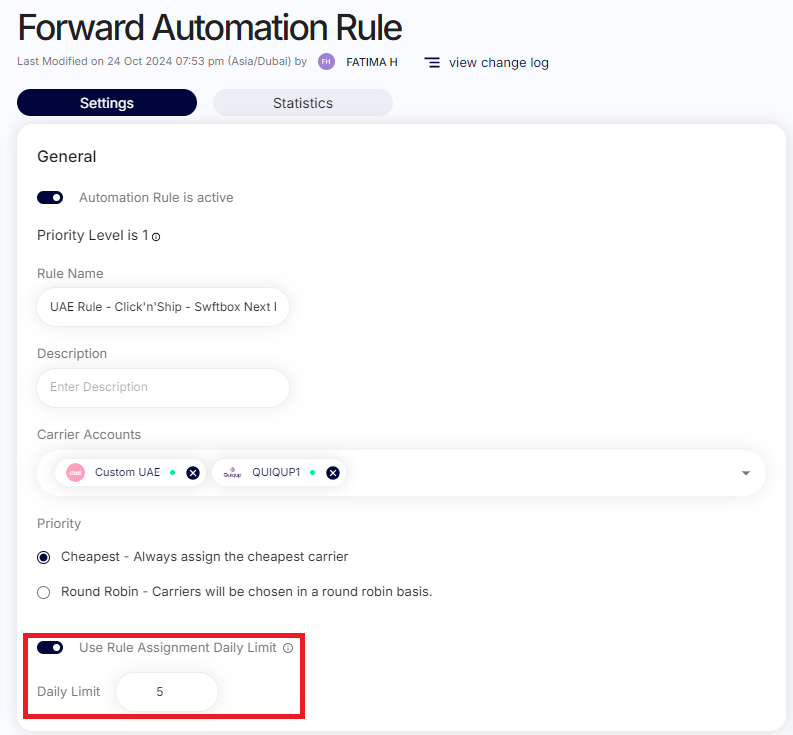 Automation rules enhancement: daily limit and statistics