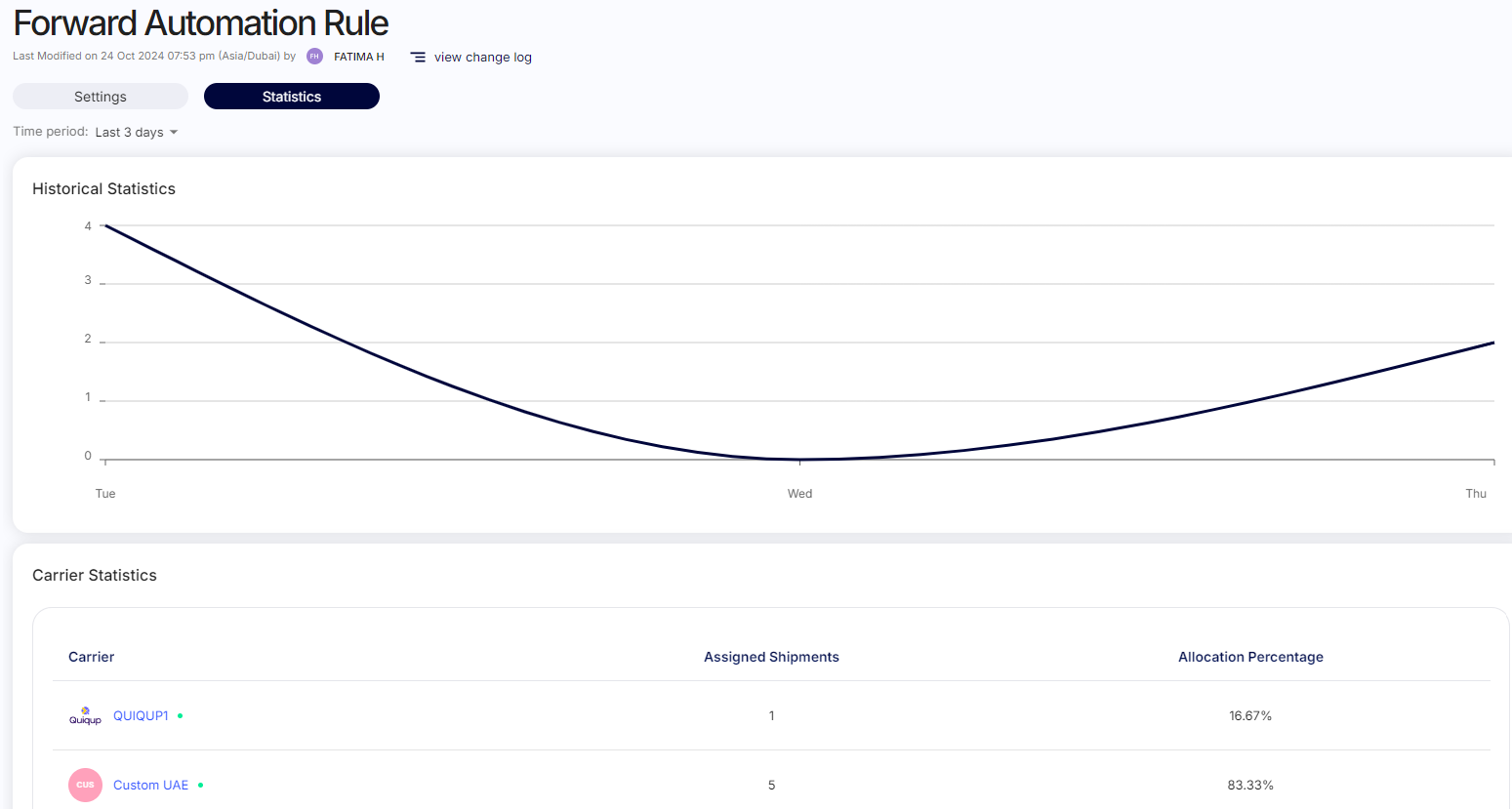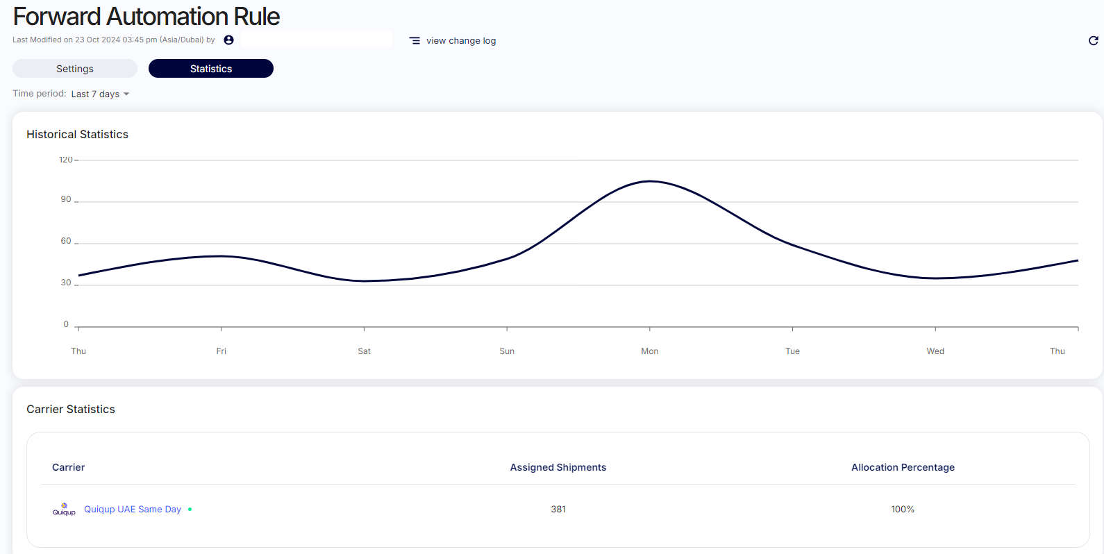 Historical statistics for rules: A new "Statistics" tab has been added to the Automation Rule screen, allowing users to view historical data for each rule. Users can now see the execution count for the past 7 days.