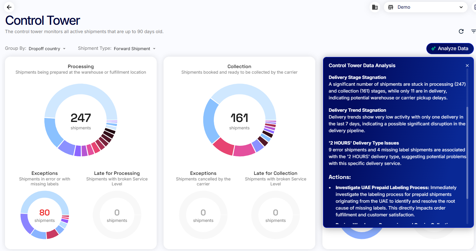 A few months ago, we introduced Carriyo AI to help you quickly understand shipment errors. Now, we’re taking it a step further with a new feature in the Control Tower: Analyze Data.