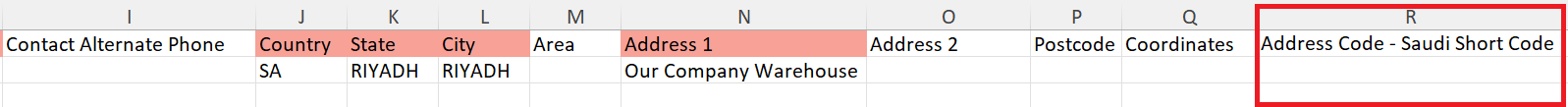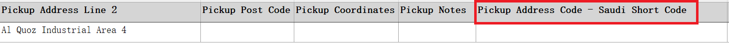 In the export file, you will also find 2 new columns for the Dropoff Address Code - Saudi Short Code and Pickup Address Code - Saudi Short Code